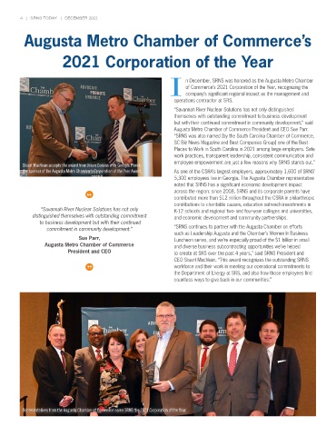 I n December, SRNS was honored as the Augusta Metro Chamber