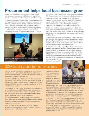 information about doing business at SRS, during the Augusta Metro 80% of all procurement dollars to these local and national companies.