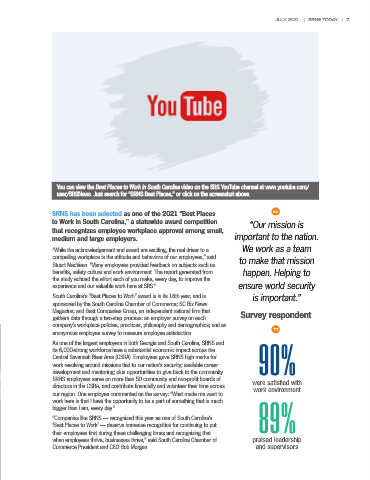 You can view the Best Places to Work in South Carolina video on the SRS YouTube channel at www.youtube.com/