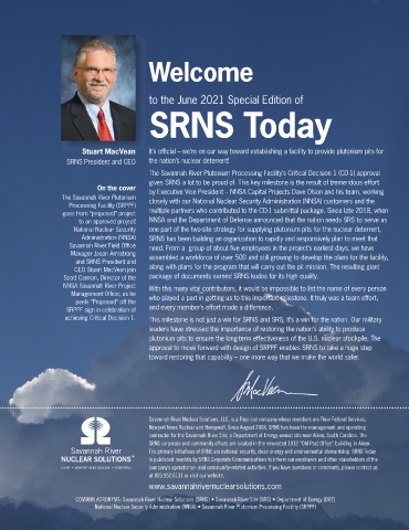is published monthly by SRNS Corporate Communications to inform our employees and other stakeholders of the